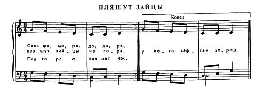 Пляшут зайцы (распевка с нотами)